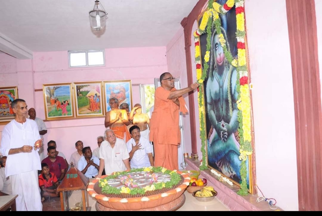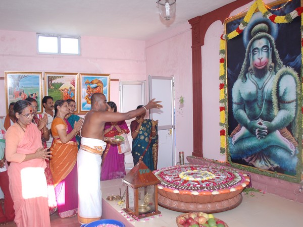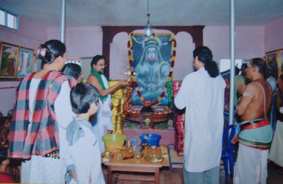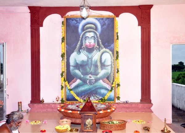 Entry into the Mandir fills the minds with the Divine presence of 7ft tall Yoga Anjaneya and the complete works of Ramayan. It is just like entering to Ram Lokha with reverberation of Ram Nam in the mind. Parikrama / Pradakshina of the Ram Nam will destroy all our sins and liberates us from the cycle of birth and death.